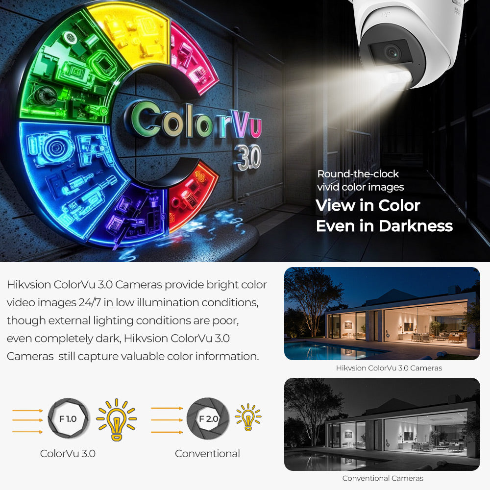 Hikvision Compatible 8MP Acusense Smart Hybrid Light Fixed Turret PoE IP Camera Built-in 2-way Mic and Motion Detection