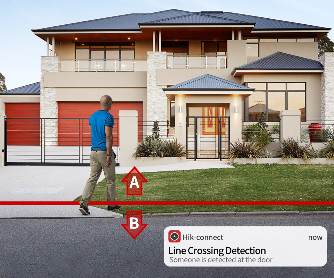 This camera supports Line Crossing Detection, which triggers an instant alert when someone crosses a predefined virtual line. It can work with face detection at the same time for enhanced perimeter security.