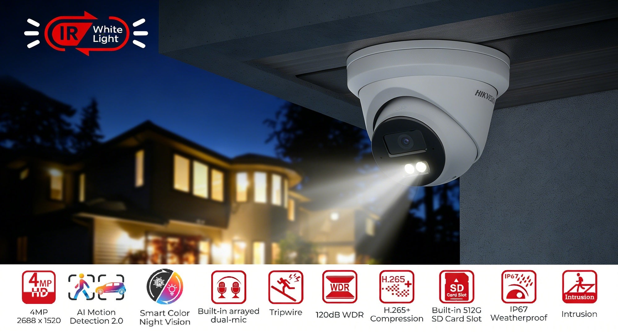 - Smart Hybrid Light: Integrates IR and White lights, 4 supplemental lighting modes